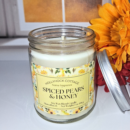 Description: Golden honey drizzled over ripe pears, warmed with a touch of spice—this cozy candle fills your space with the perfect balance of sweetness and autumn comfort.